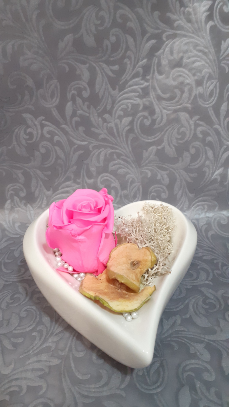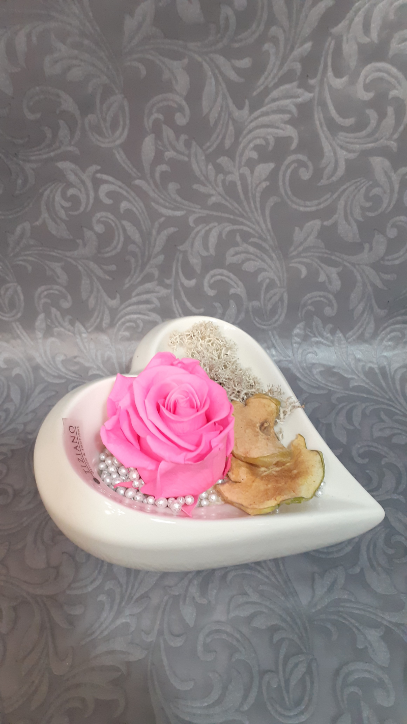 Cuore in Ceramica con Rose ed Elementi Stabilizzati